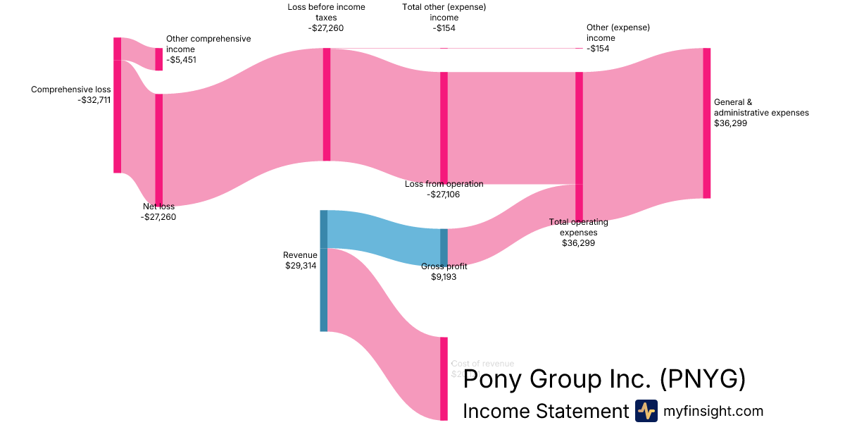 For the quarter ending 2025-09-30, PNYG made $29,314 in revenue. -$32,711 in net income. Net profit margin of -111.59%.