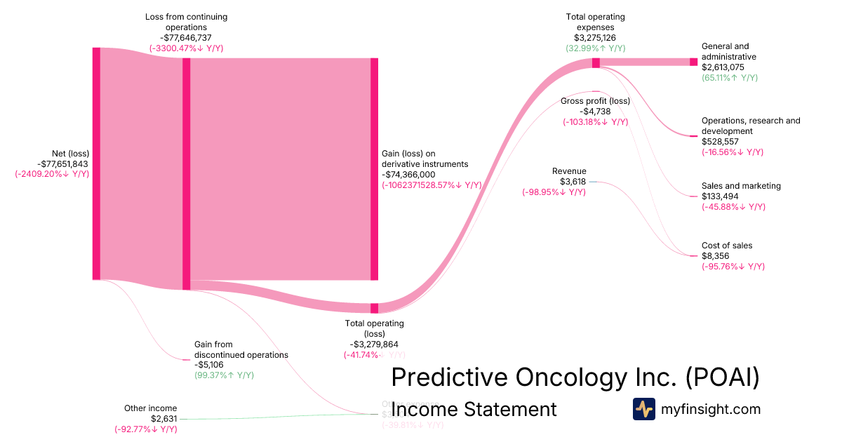 For the quarter ending 2025-09-30, POAI made $3,618 in revenue. -$77,651,843 in net income. Net profit margin of -2146264.32%.