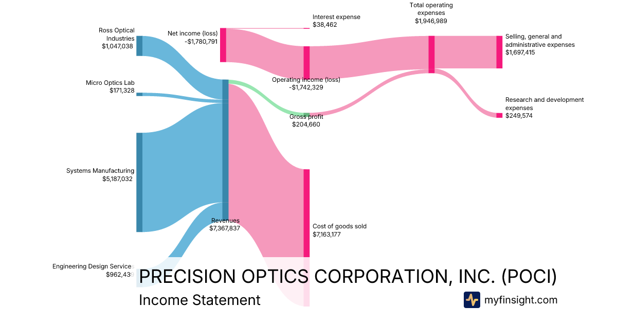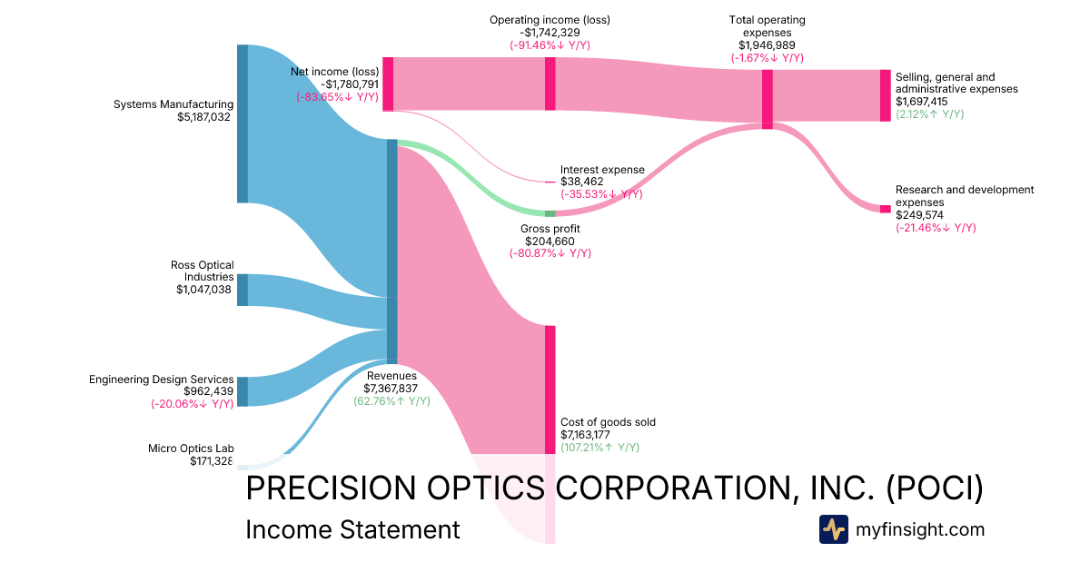 For the quarter ending 2025-12-31, POCI made $7,367,837 in revenue. -$1,780,791 in net income. Net profit margin of -24.17%.