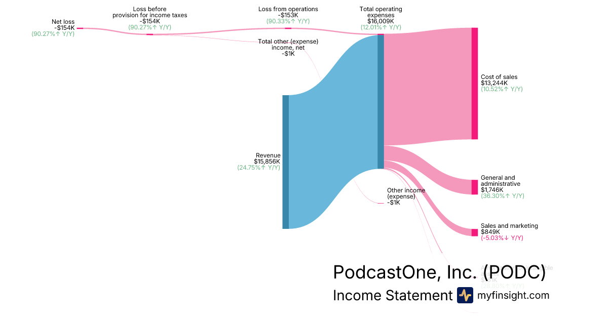 For the quarter ending 2025-12-31, PODC made $15,856K in revenue. -$154K in net income. Net profit margin of -0.97%.