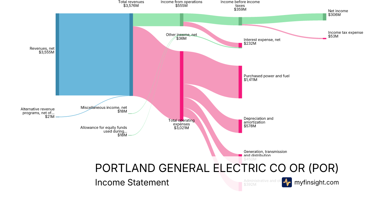 For the year ending 2025-12-31, POR made $3,576M in revenue. $306M in net income. Net profit margin of 8.56%.