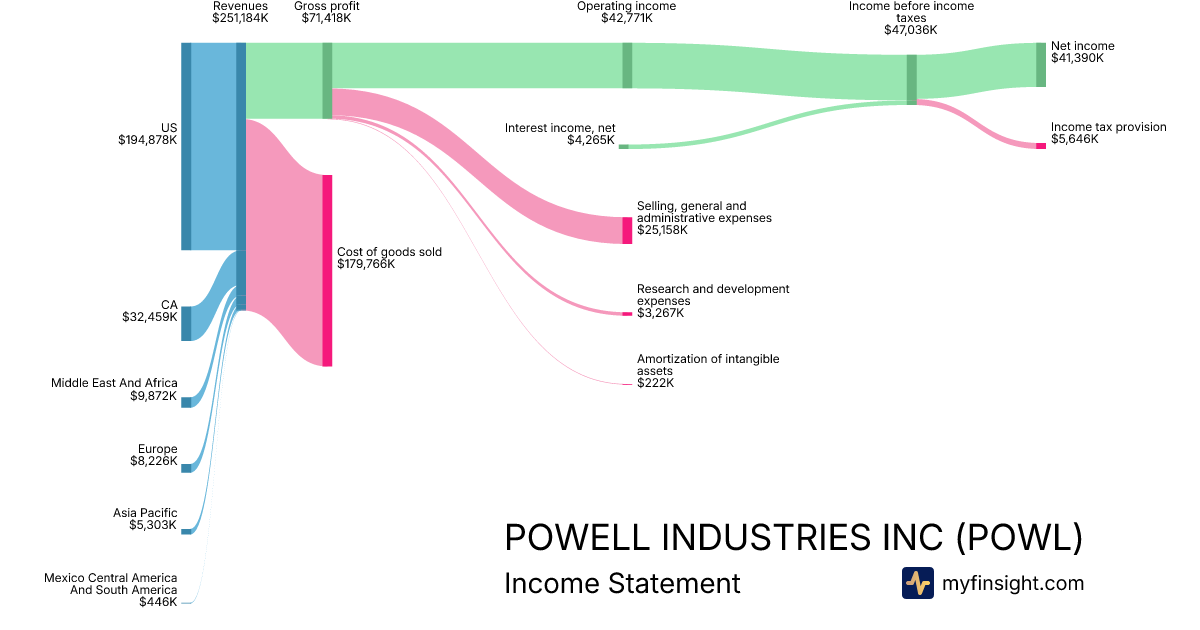 For the quarter ending 2025-12-31, POWL made $251,184K in revenue. $41,390K in net income. Net profit margin of 16.48%.