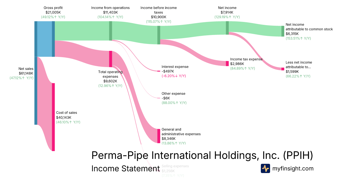 For the quarter ending 2025-10-31, PPIH made $61,148K in revenue. $6,315K in net income. Net profit margin of 10.33%.