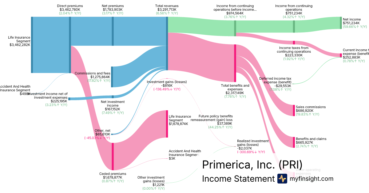For the year ending 2025-12-31, PRI made $3,291,713K in revenue. $751,234K in net income. Net profit margin of 22.82%.