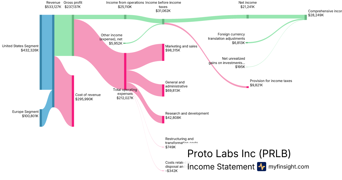 For the year ending 2025-12-31, PRLB made $533,127K in revenue. $28,249K in net income. Net profit margin of 5.30%.
