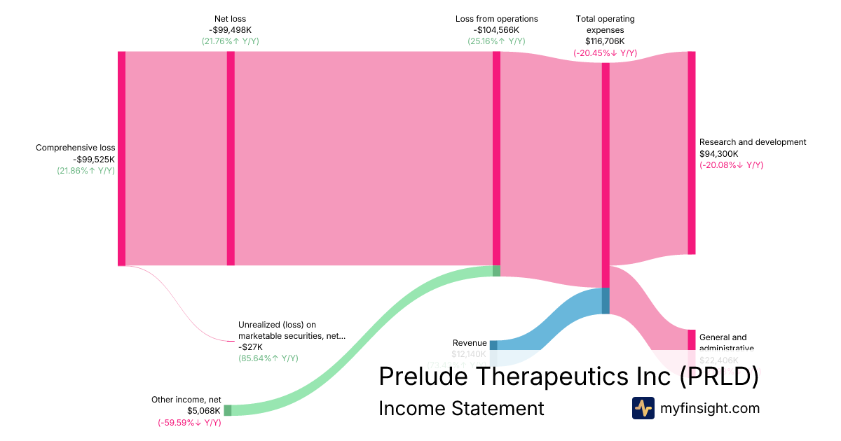 For the year ending 2025-12-31, PRLD made $12,140K in revenue. -$99,525K in net income. Net profit margin of -819.81%.