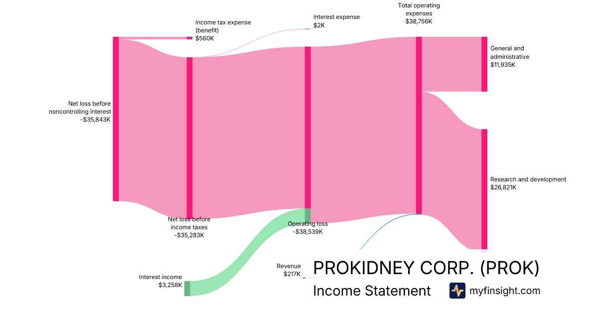 For the quarter ending 2025-09-30, PROK made $217K in revenue. -$35,843K in net income. Net profit margin of -16517.51%.