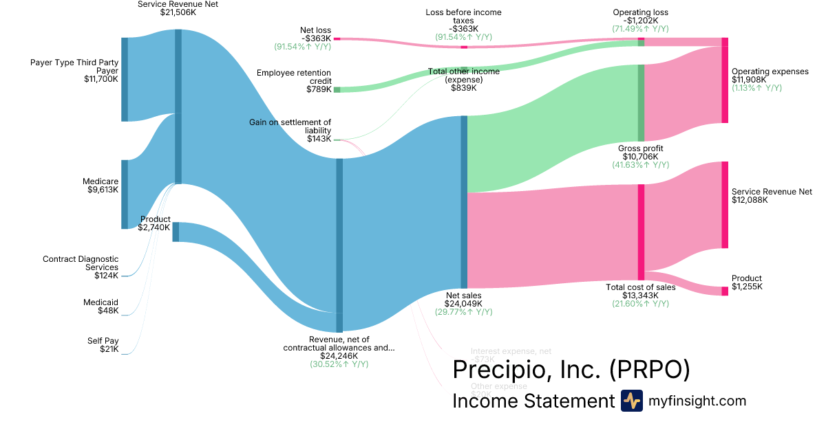 For the year ending 2025-12-31, PRPO made $24,049K in revenue. -$363K in net income. Net profit margin of -1.51%.