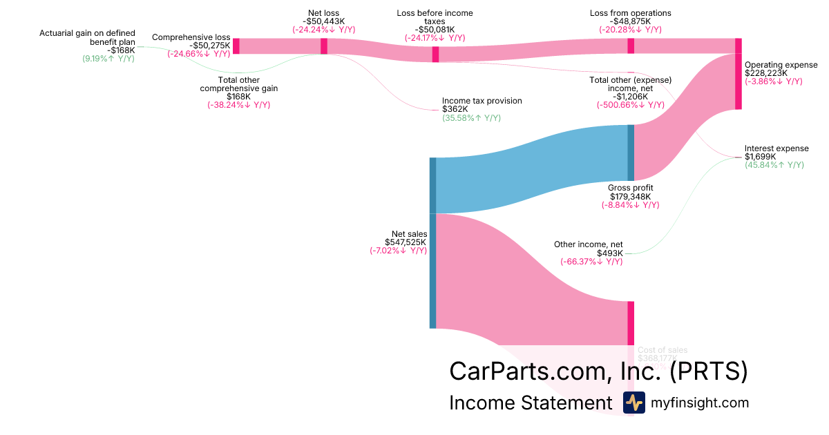 For the year ending 2026-01-03, PRTS made $547,525K in revenue. -$50,275K in net income. Net profit margin of -9.18%.