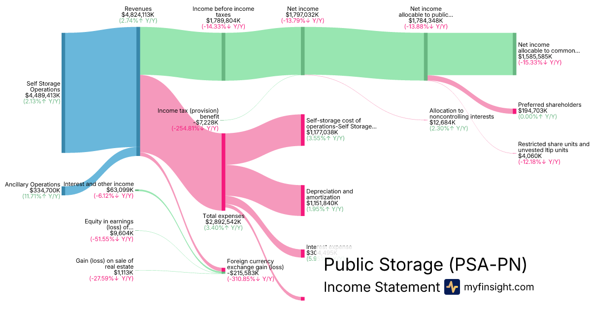For the year ending 2025-12-31, PSA-PN made $4,824,113K in revenue. $1,585,585K in net income. Net profit margin of 32.87%.
