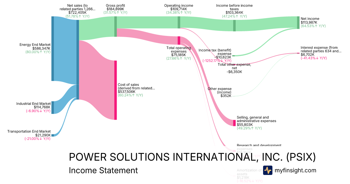 For the year ending 2025-12-31, PSIX made $722,405K in revenue. $113,987K in net income. Net profit margin of 15.78%.