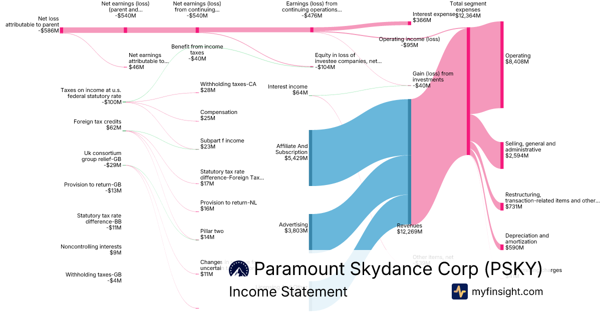 For the year ending 2025-12-31, PSKY made $12,269M in revenue. -$586M in net income. Net profit margin of -4.78%.