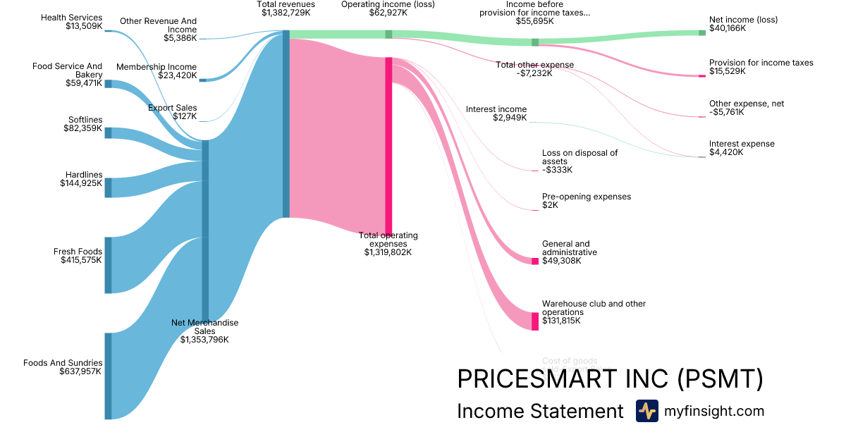 For the quarter ending 2025-11-30, PSMT made $1,382,729K in revenue. $40,166K in net income. Net profit margin of 2.90%.