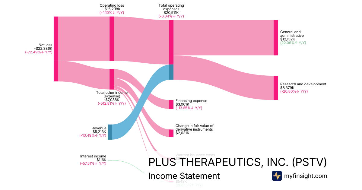 For the year ending 2025-12-31, PSTV made $5,213K in revenue. -$22,386K in net income. Net profit margin of -429.43%.