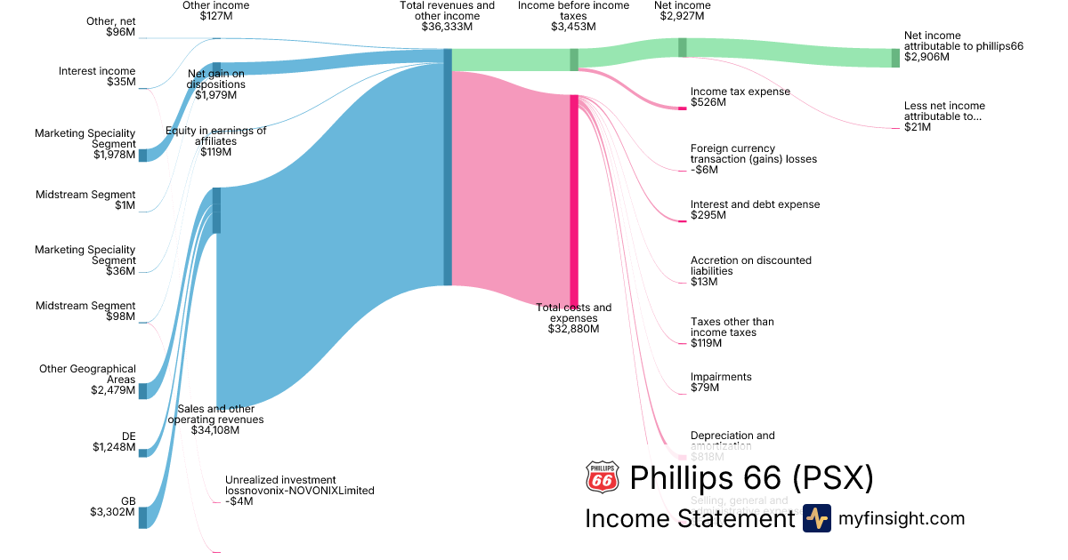 For the year ending 2025-12-31, PSX made $136,560M in revenue. $4,403M in net income. Net profit margin of 3.22%.