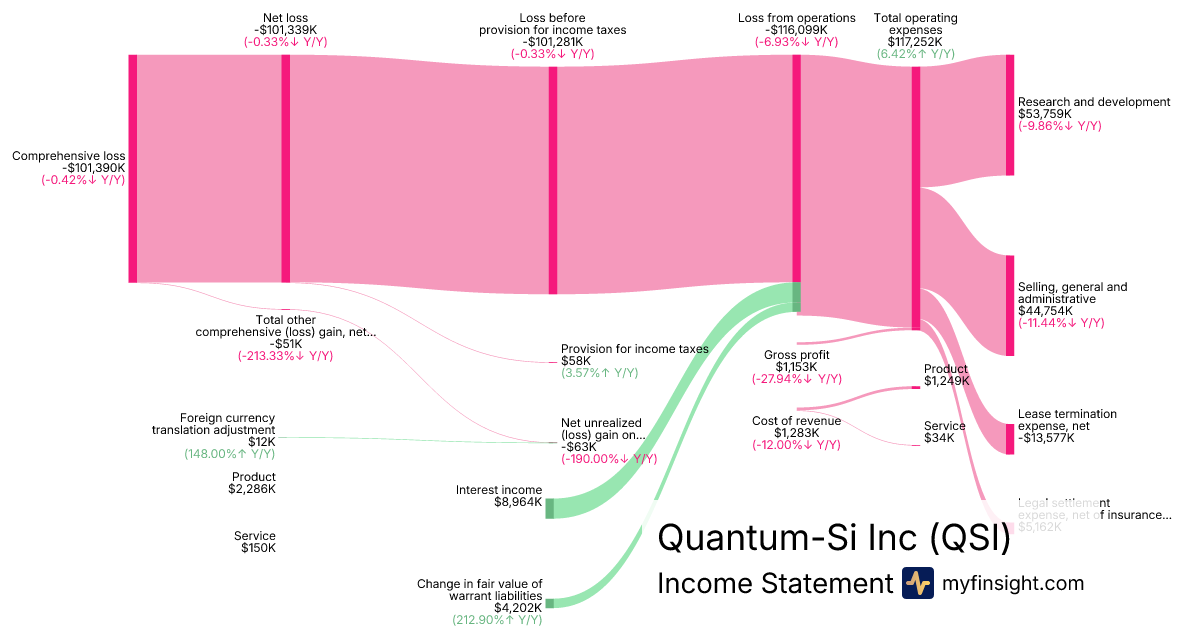 For the year ending 2025-12-31, QSI made $2,436K in revenue. -$101,390K in net income. Net profit margin of -4162.15%.