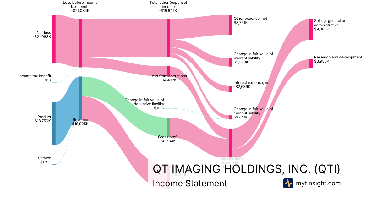 For the year ending 2025-12-31, QTI made $18,925K in revenue. -$21,083K in net income. Net profit margin of -111.40%.