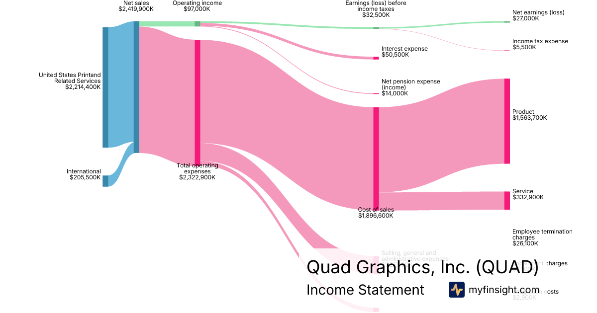 For the year ending 2025-12-31, QUAD made $2,419,900K in revenue. $27,000K in net income. Net profit margin of 1.12%.