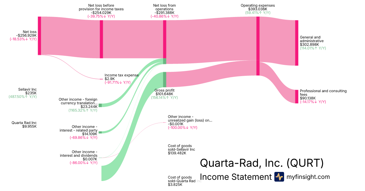For the year ending 2025-12-31, QURT made $244.955K in revenue. -$256.929K in net income. Net profit margin of -104.89%.