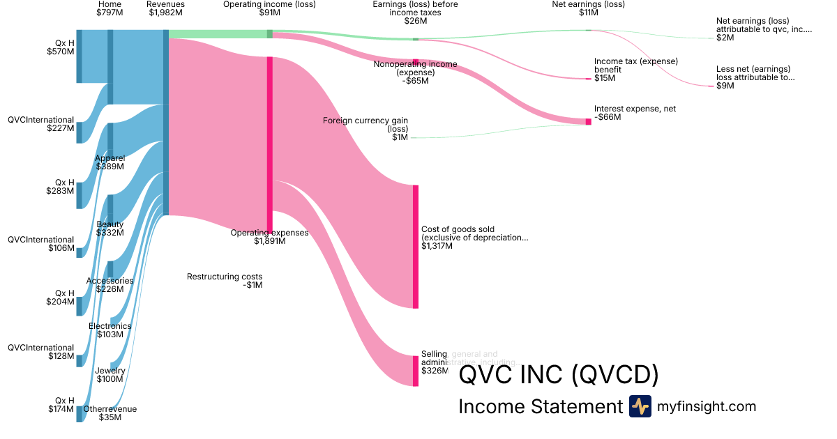 For the quarter ending 2025-09-30, QVCD made $1,982M in revenue. $2M in net income. Net profit margin of 0.10%.