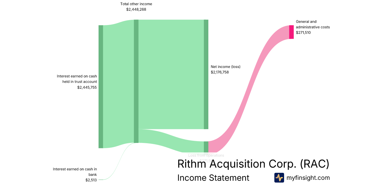 For the quarter ending 2025-12-31, RAC made $2,448,268 in revenue. $2,176,758 in net income. Net profit margin of 88.91%.