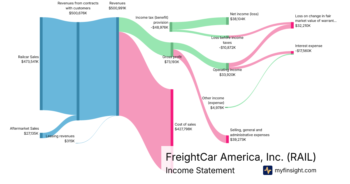 For the year ending 2025-12-31, RAIL made $500,991K in revenue. $38,104K in net income. Net profit margin of 7.61%.