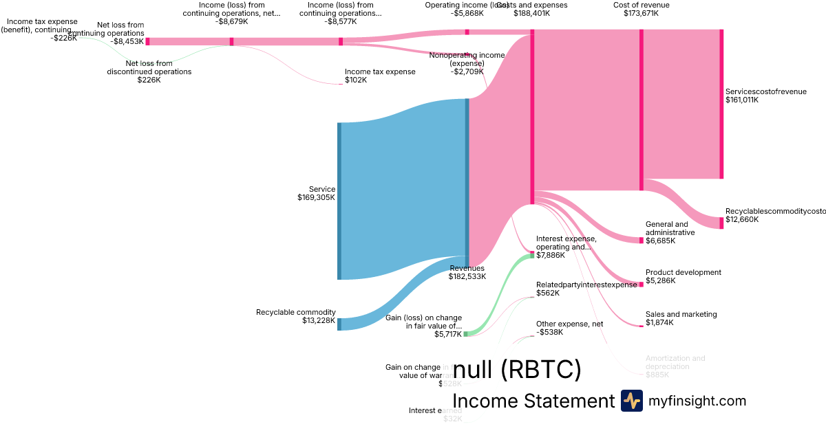 For the quarter ending 2024-09-30, RBTC made $182,533K in revenue. -$8,453K in net income. Net profit margin of -4.63%.