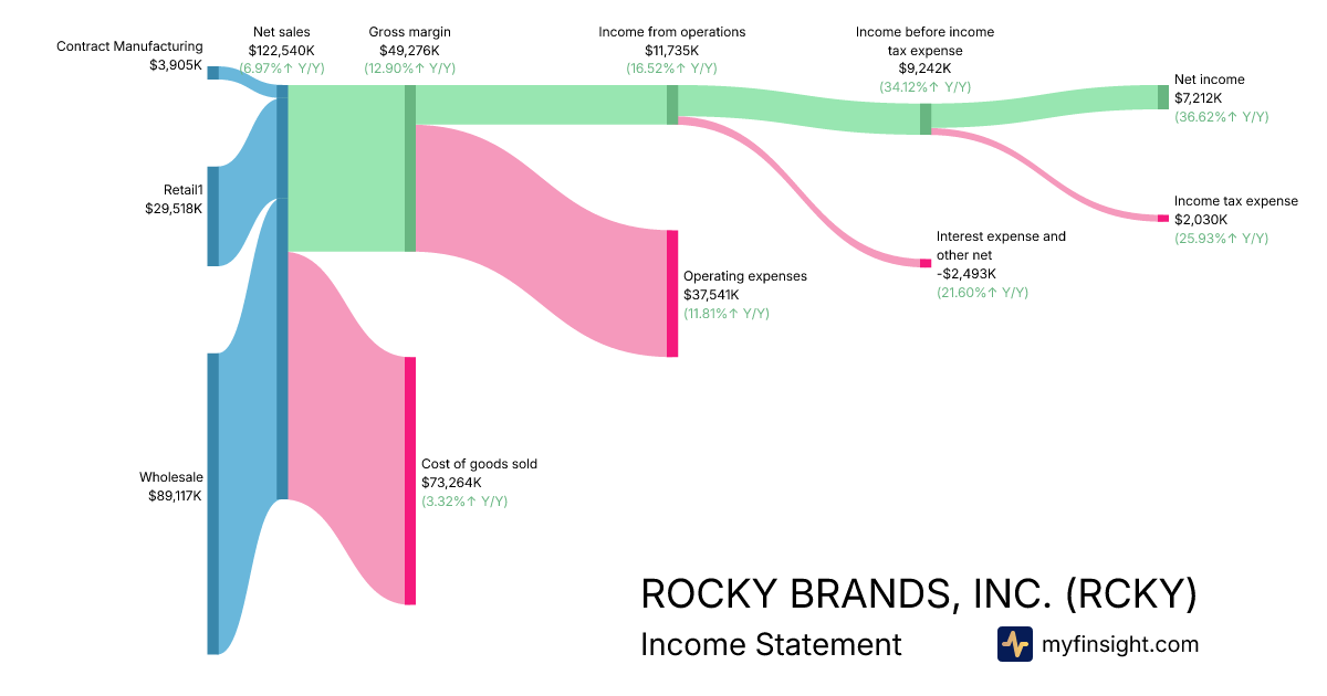 For the quarter ending 2025-09-30, RCKY made $122,540K in revenue. $7,212K in net income. Net profit margin of 5.89%.