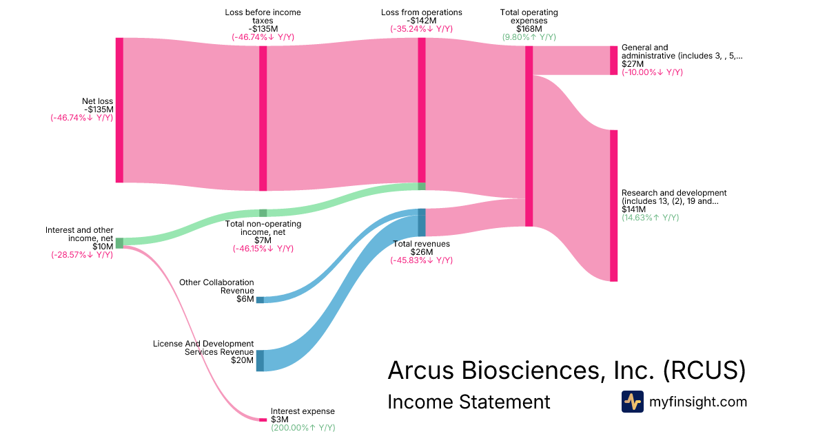 For the quarter ending 2025-09-30, RCUS made $26,000K in revenue. -$135,000K in net income. Net profit margin of -519.23%.