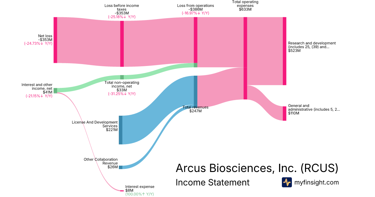 For the year ending 2025-12-31, RCUS made $247M in revenue. -$353M in net income. Net profit margin of -142.91%.