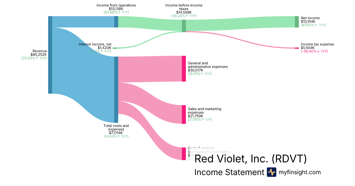 For the year ending 2025-12-31, RDVT made $90,252K in revenue. $13,154K in net income. Net profit margin of 14.57%.