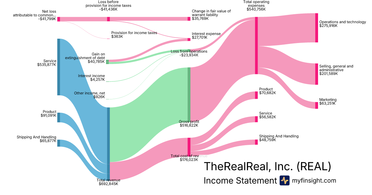 For the year ending 2025-12-31, REAL made $692,845K in revenue. -$41,799K in net income. Net profit margin of -6.03%.