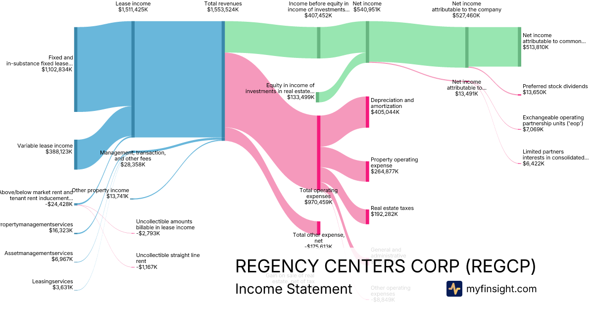 For the year ending 2025-12-31, REGCP made $1,553,524K in revenue. $513,810K in net income. Net profit margin of 33.07%.