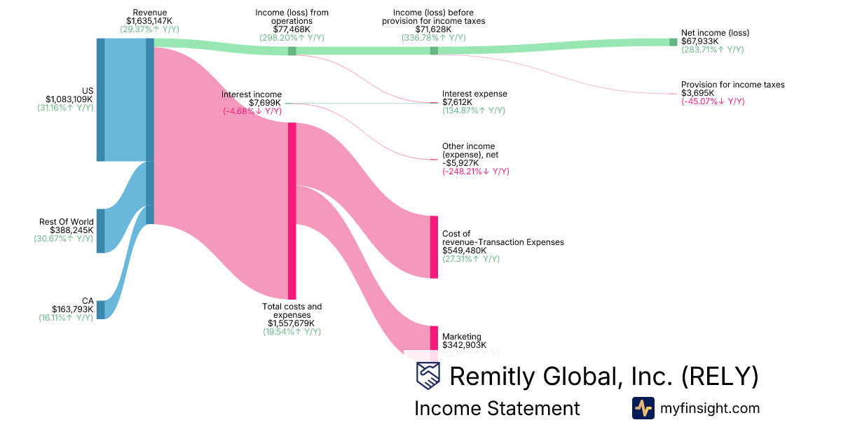 For the year ending 2025-12-31, RELY made $1,635,147K in revenue. $67,933K in net income. Net profit margin of 4.15%.