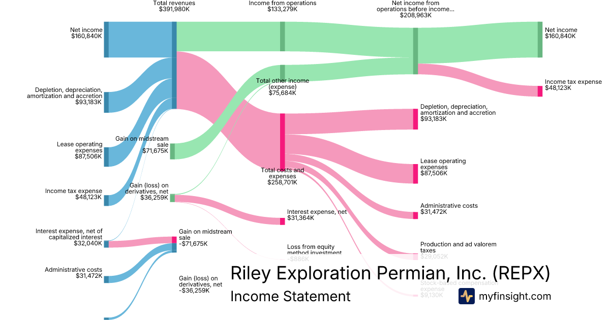 For the year ending 2025-12-31, REPX made $391,980K in revenue. $160,840K in net income. Net profit margin of 41.03%.