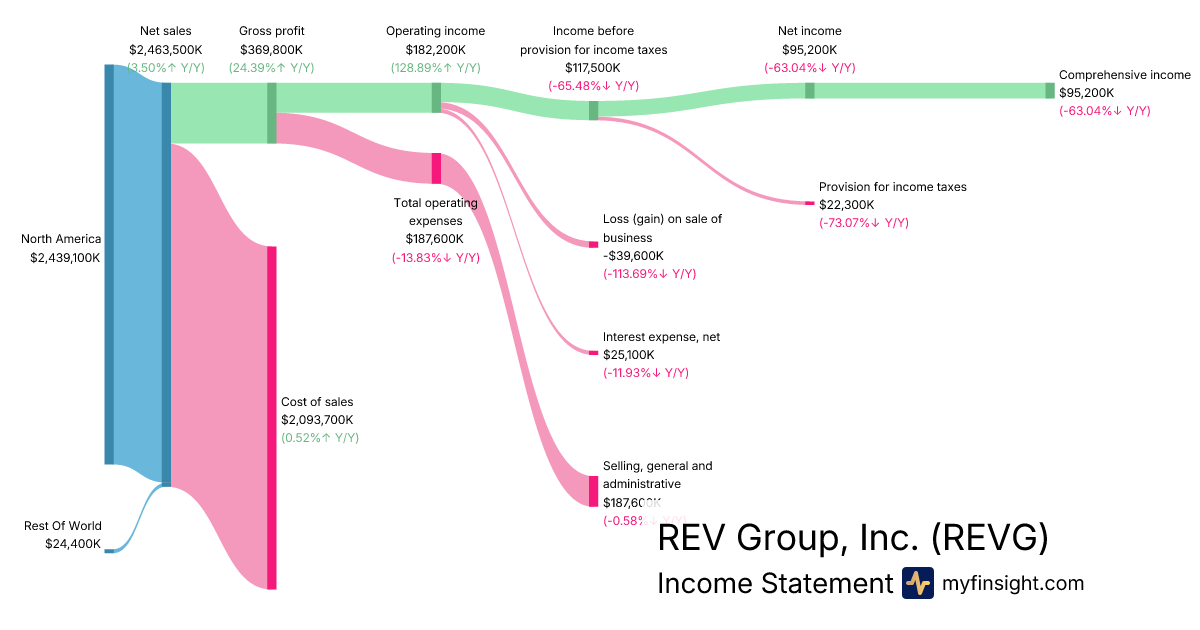 For the year ending 2025-10-31, REVG made $2,463,500K in revenue. $95,200K in net income. Net profit margin of 3.86%.