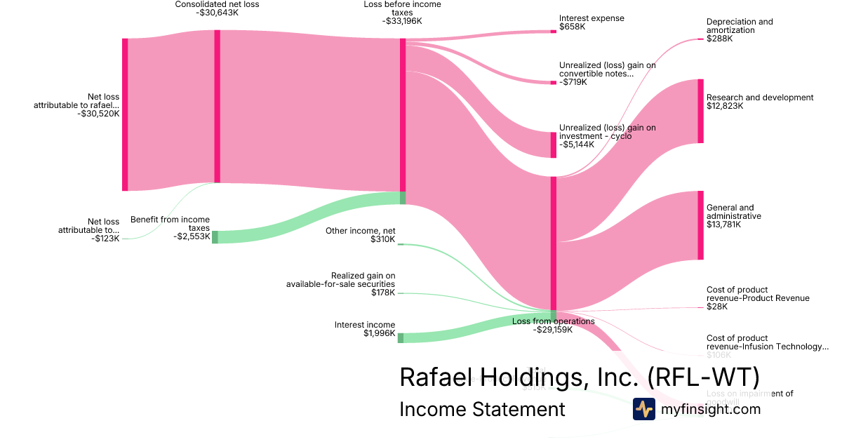 For the year ending 2025-07-31, RFL-WT made $1,642K in revenue. -$30,520K in net income. Net profit margin of -1858.71%.