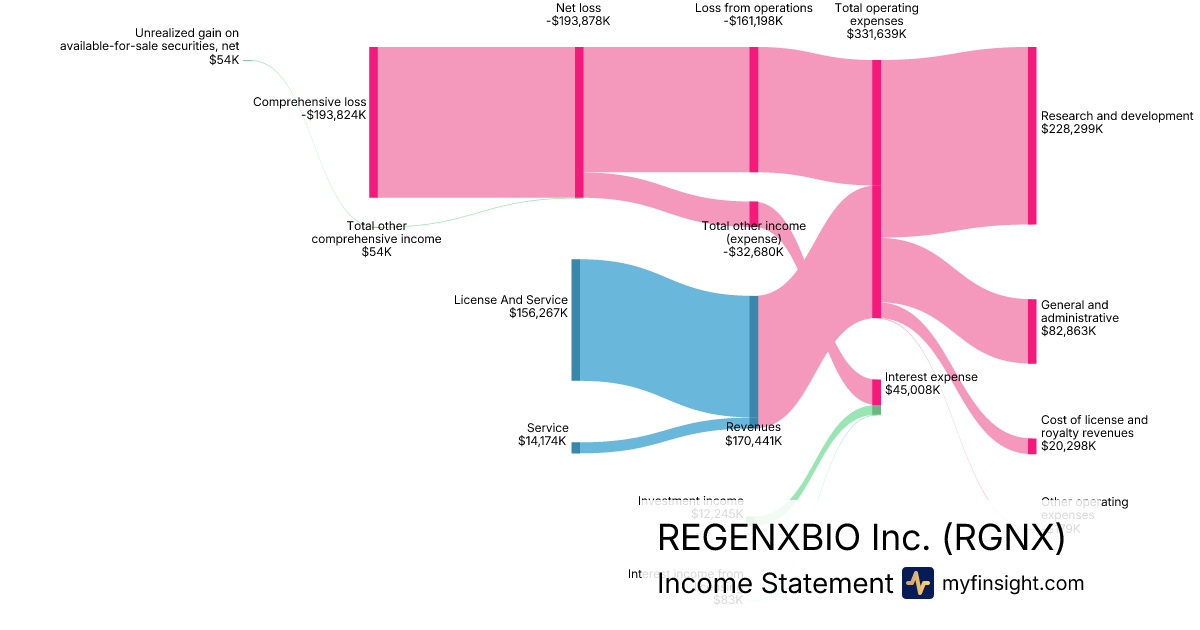 For the year ending 2025-12-31, RGNX made $170,441K in revenue. -$193,824K in net income. Net profit margin of -113.72%.