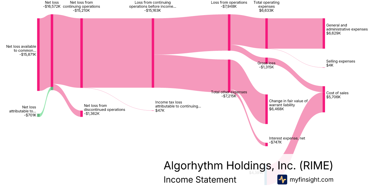 For the year ending 2025-12-31, RIME made $4,391K in revenue. -$15,871K in net income. Net profit margin of -361.44%.