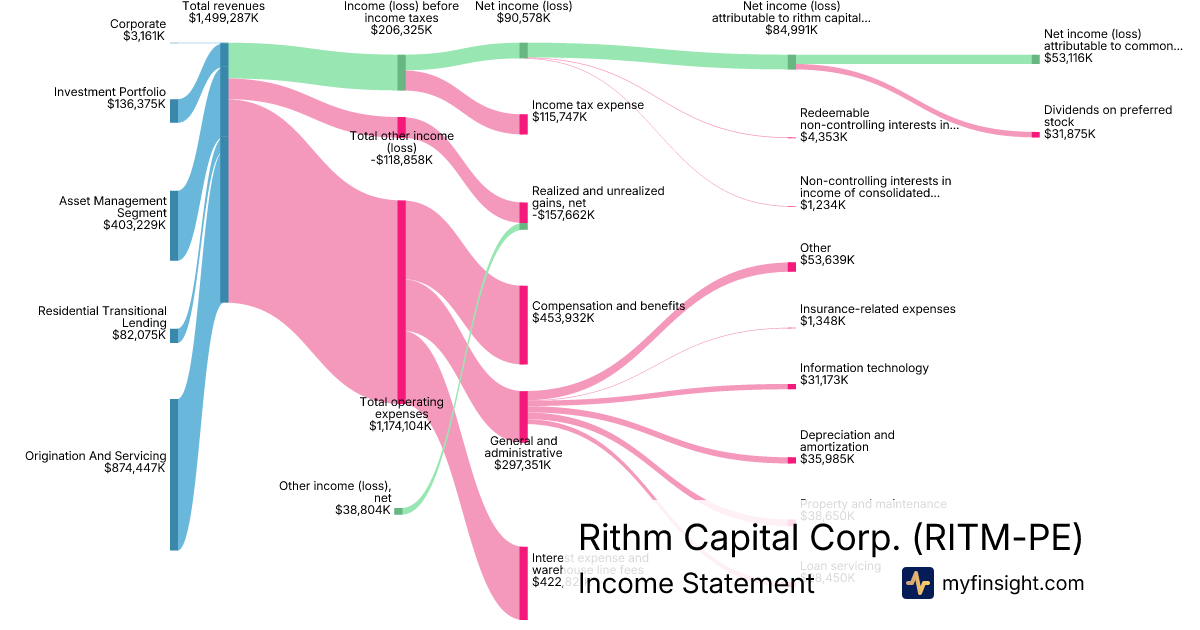 For the year ending 2025-12-31, RITM-PE made $4,590,228K in revenue. $567,200K in net income. Net profit margin of 12.36%.