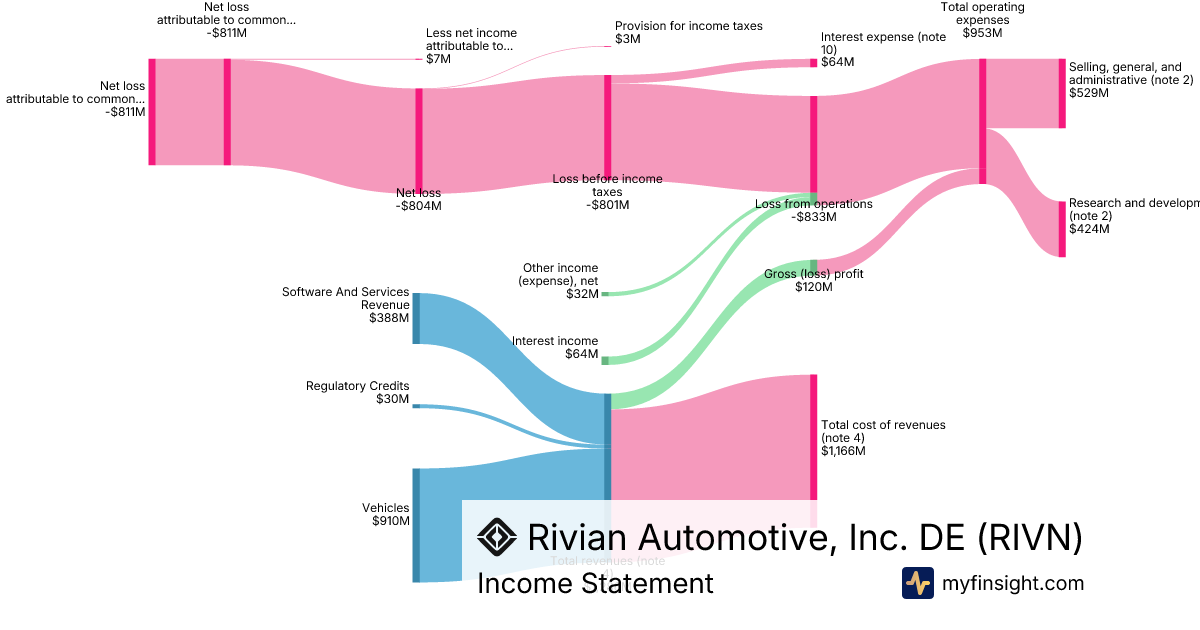For the year ending 2025-12-31, RIVN made $5,387M in revenue. -$3,646M in net income. Net profit margin of -67.68%.