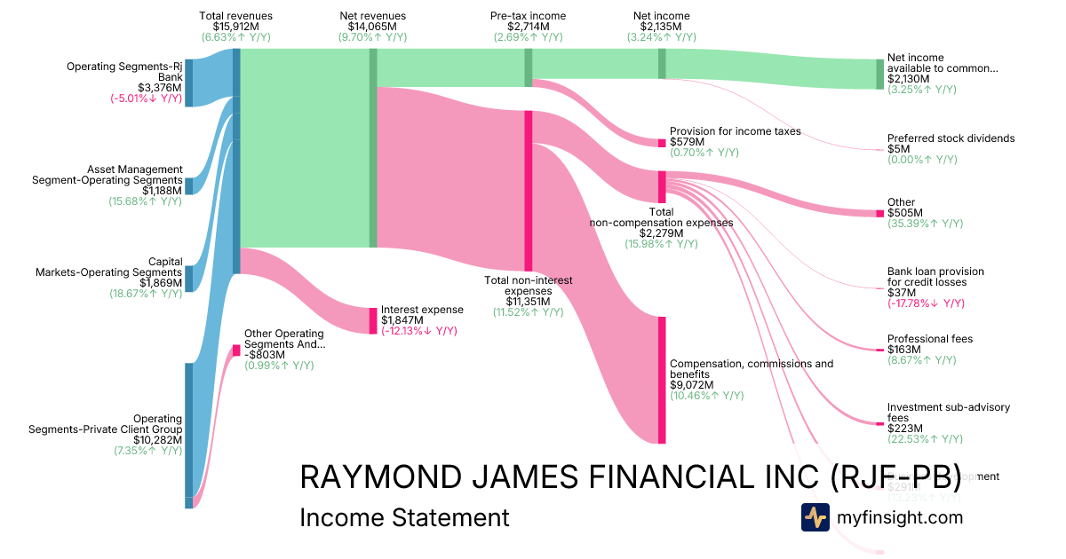 For the year ending 2025-09-30, RJF-PB made $15,912M in revenue. $2,130M in net income. Net profit margin of 13.39%.
