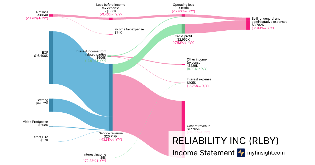 For the year ending 2025-12-31, RLBY made $20,717K in revenue. -$664K in net income. Net profit margin of -3.21%.