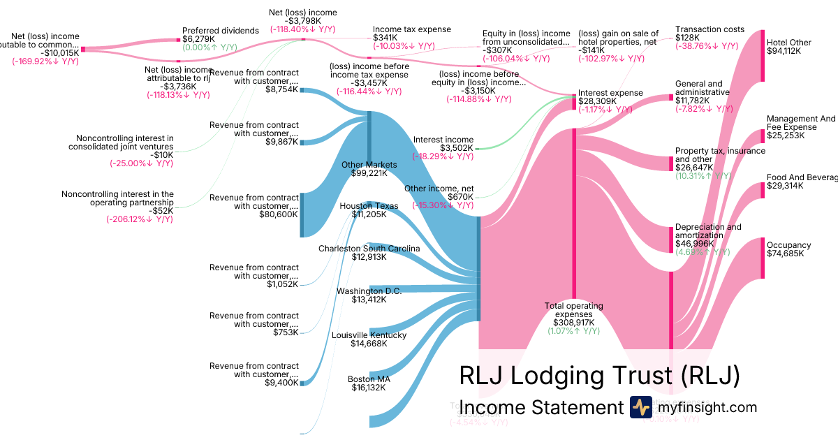 For the quarter ending 2025-09-30, RLJ made $866,436K in revenue. -$10,015K in net income. Net profit margin of -1.16%.