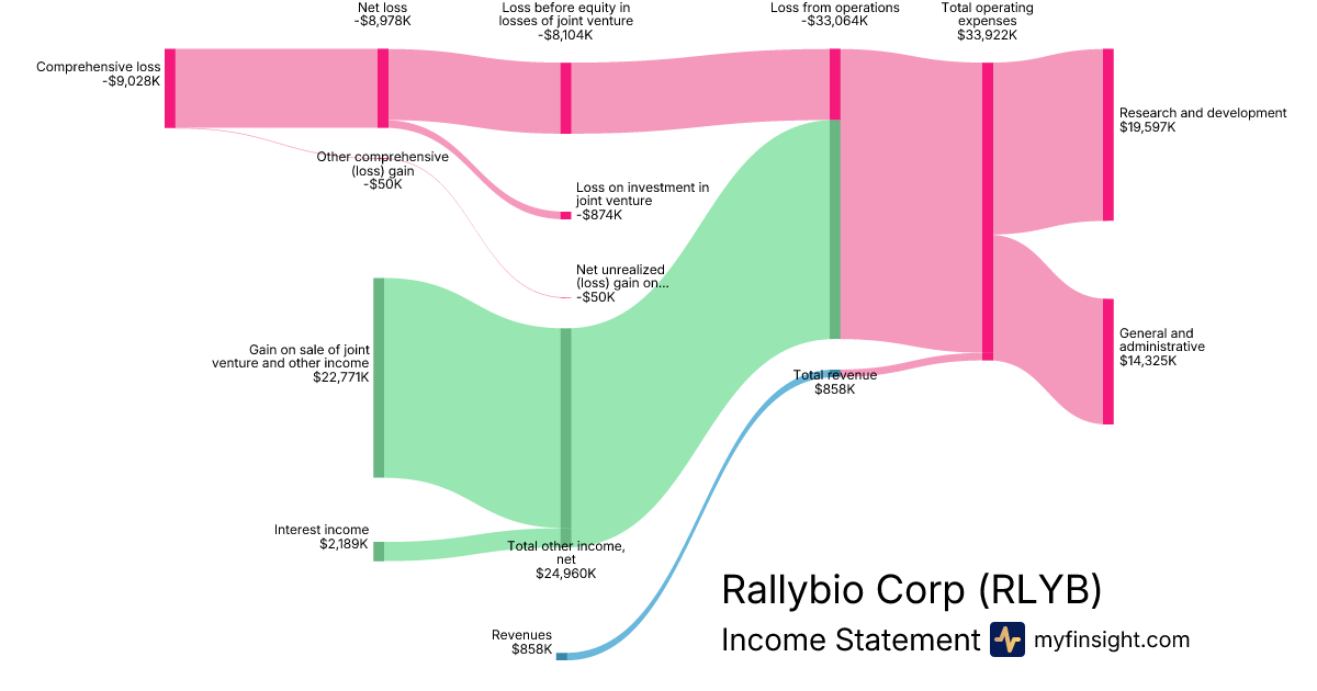 For the year ending 2025-12-31, RLYB made $858K in revenue. -$9,028K in net income. Net profit margin of -1052.21%.