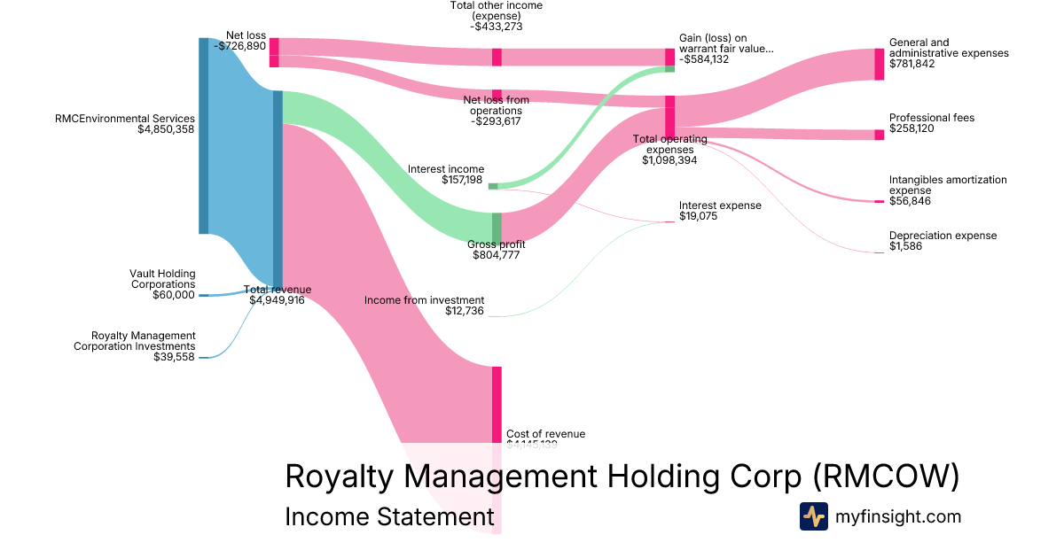 For the year ending 2025-12-31, RMCOW made $4,949,916 in revenue. -$726,890 in net income. Net profit margin of -14.68%.