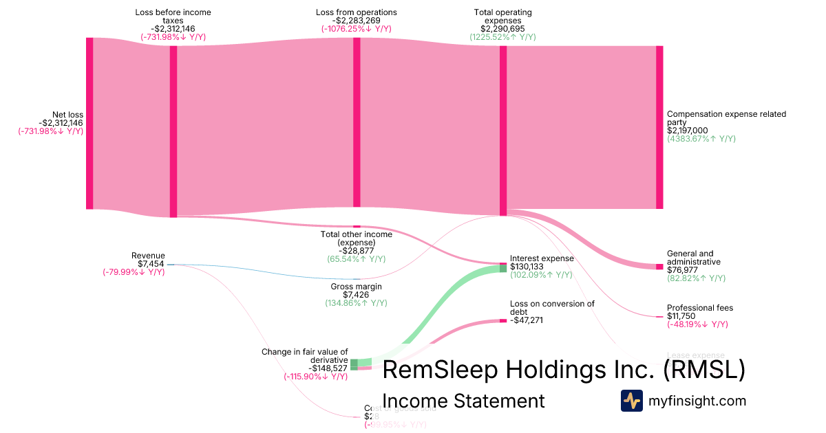 For the quarter ending 2025-09-30, RMSL made $7,454 in revenue. -$2,312,146 in net income. Net profit margin of -31018.86%.