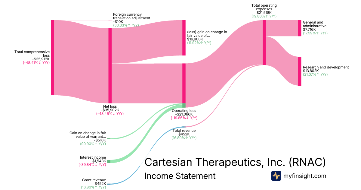 For the quarter ending 2025-09-30, RNAC made $452K in revenue. -$35,912K in net income. Net profit margin of -7945.13%.