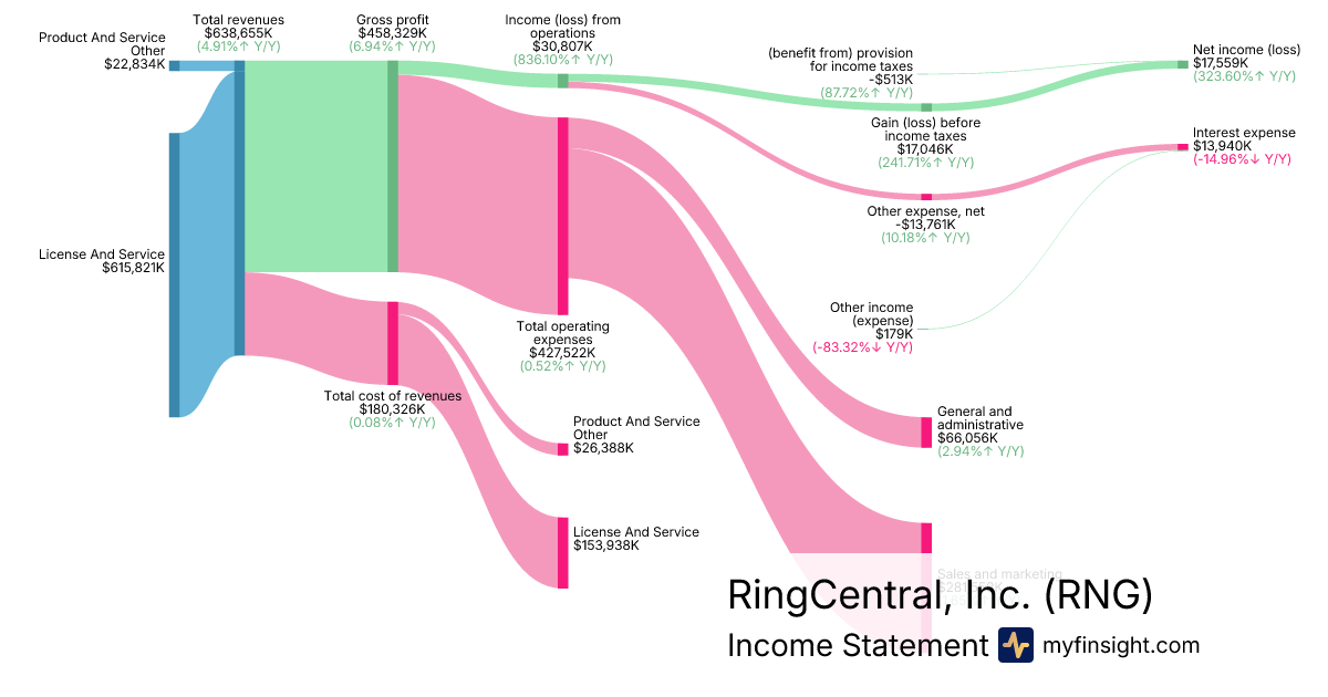For the quarter ending 2025-09-30, RNG made $638,655K in revenue. $17,559K in net income. Net profit margin of 2.75%.