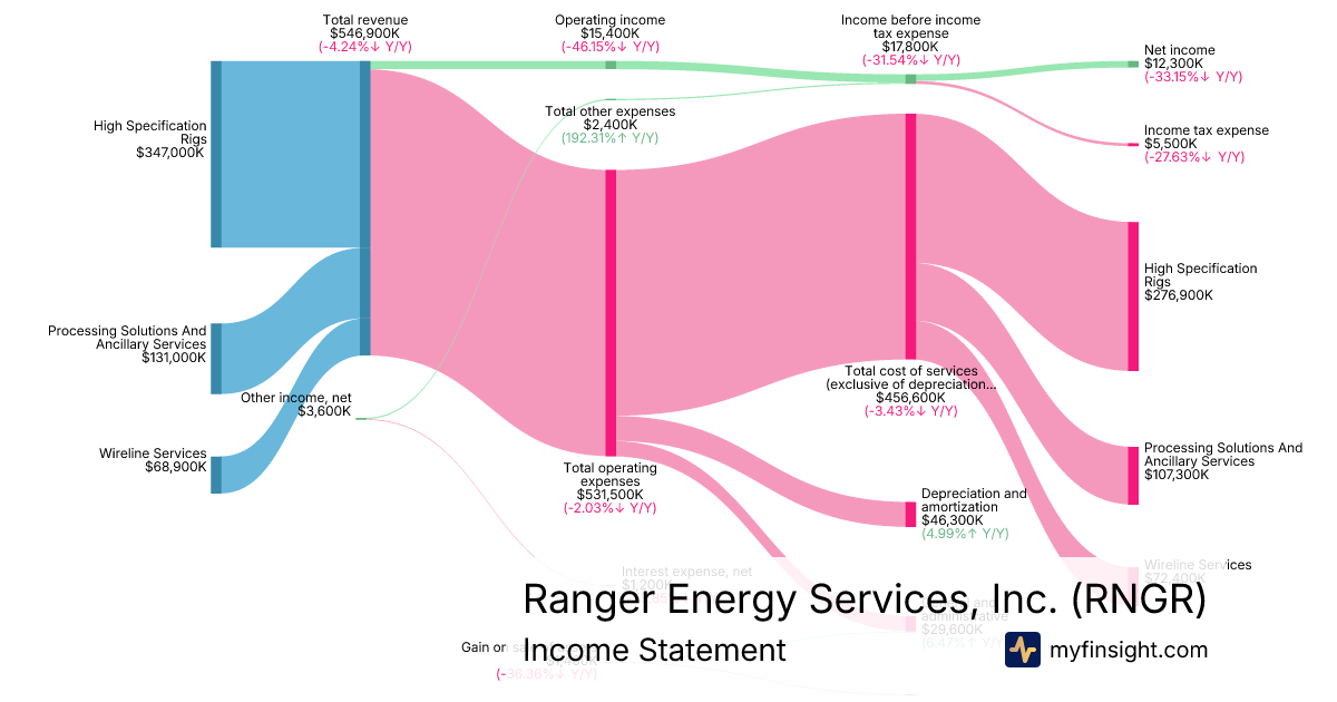 For the year ending 2025-12-31, RNGR made $546,900K in revenue. $12,300K in net income. Net profit margin of 2.25%.